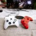Close-up of a hand holding a VR controller outdoors, showcasing modern technology.